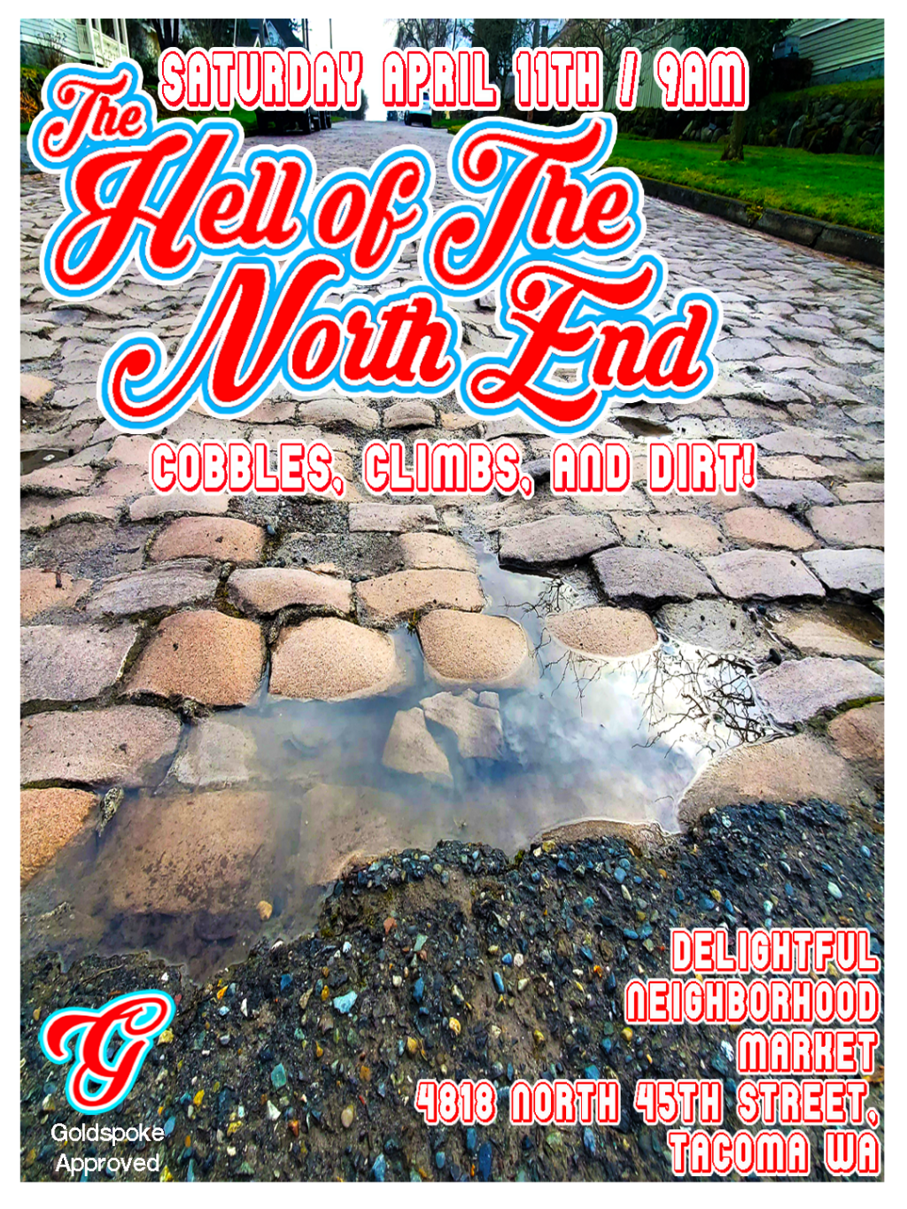 In an homage to the cobbled spring classics, I have created a route that criss-crosses the north end of Tacoma, seeking out the cobbles and the steepest climbs, with a few unpaved shortcuts for good measure.